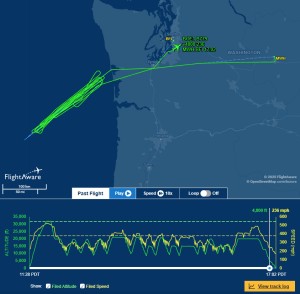 777-9 WH001 departed Boeing Field for stall speed warning testing.
