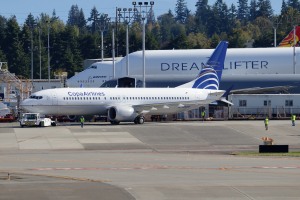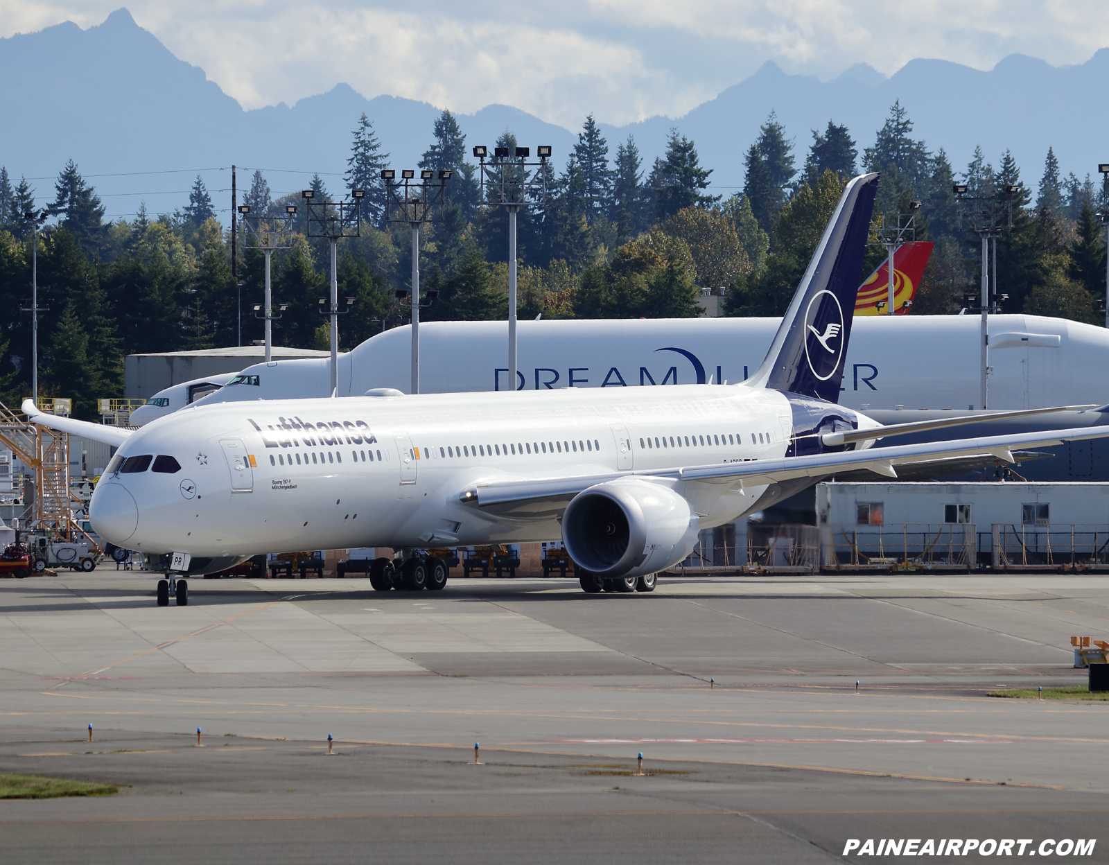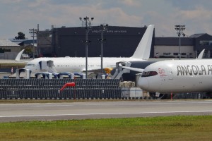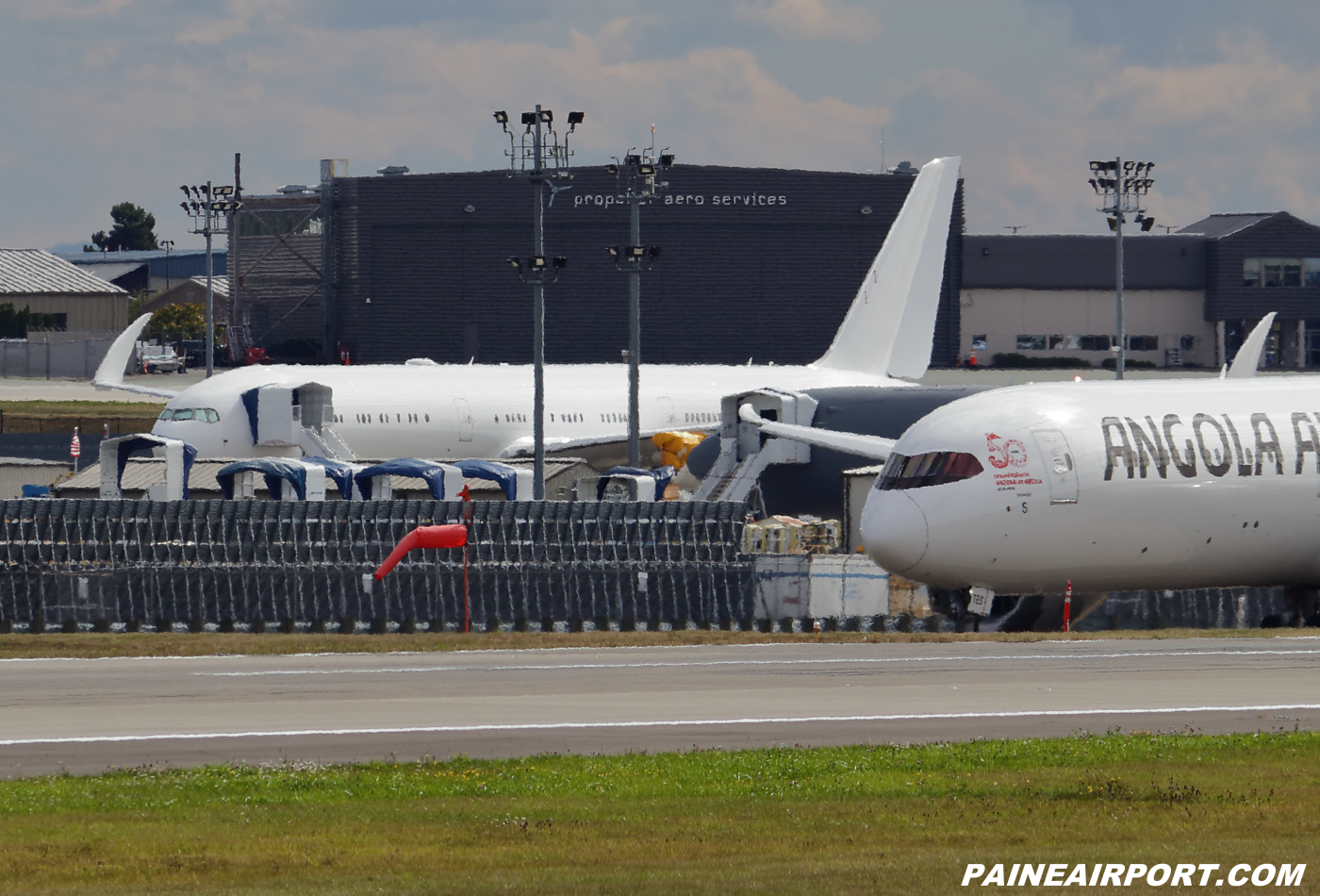 1723. The 777-9 has been parked in stall 205 since returning on August 29 from high intensity radiated fields testing at Marana. |