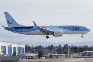 1A905 TUI 737 OO-TME functional check flight from Victorville. Parked on the flightline