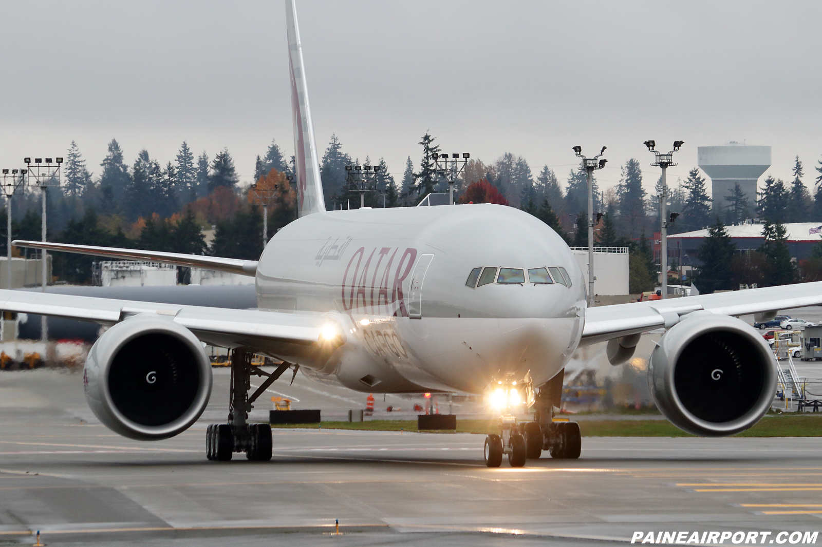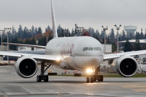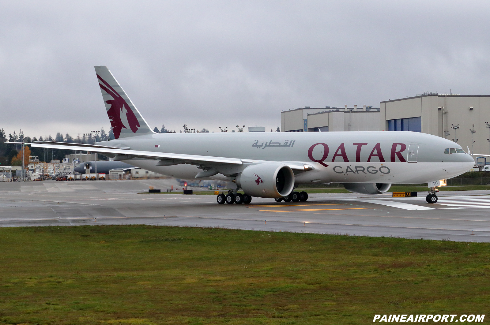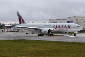 WF482 Qatar Cargo 777F A7-BTC on the runway for taxi checks.
