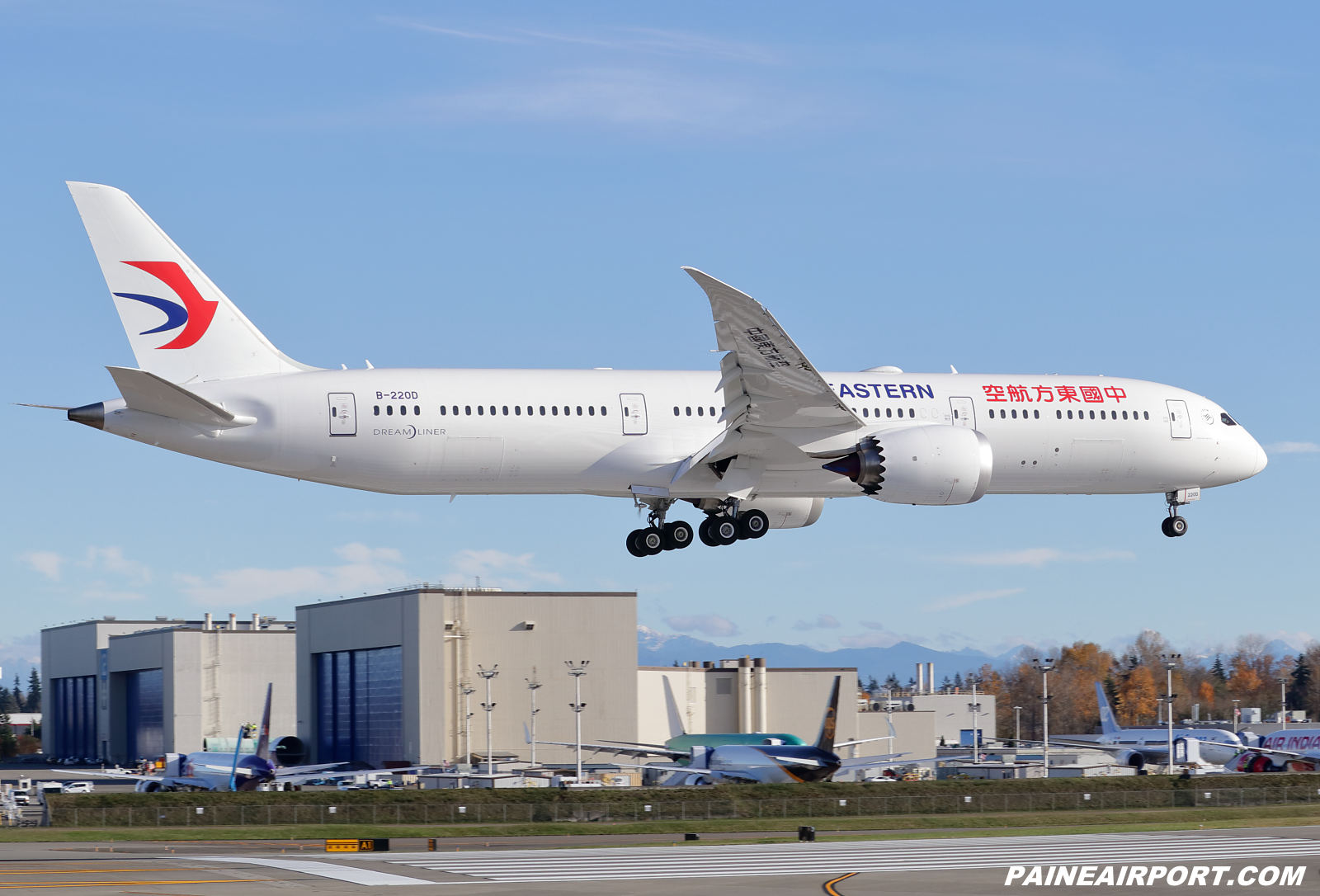 ZB905 China Eastern 787 B-220D customer flight. China Cargo 777F B-228C is at the fuel dock.
