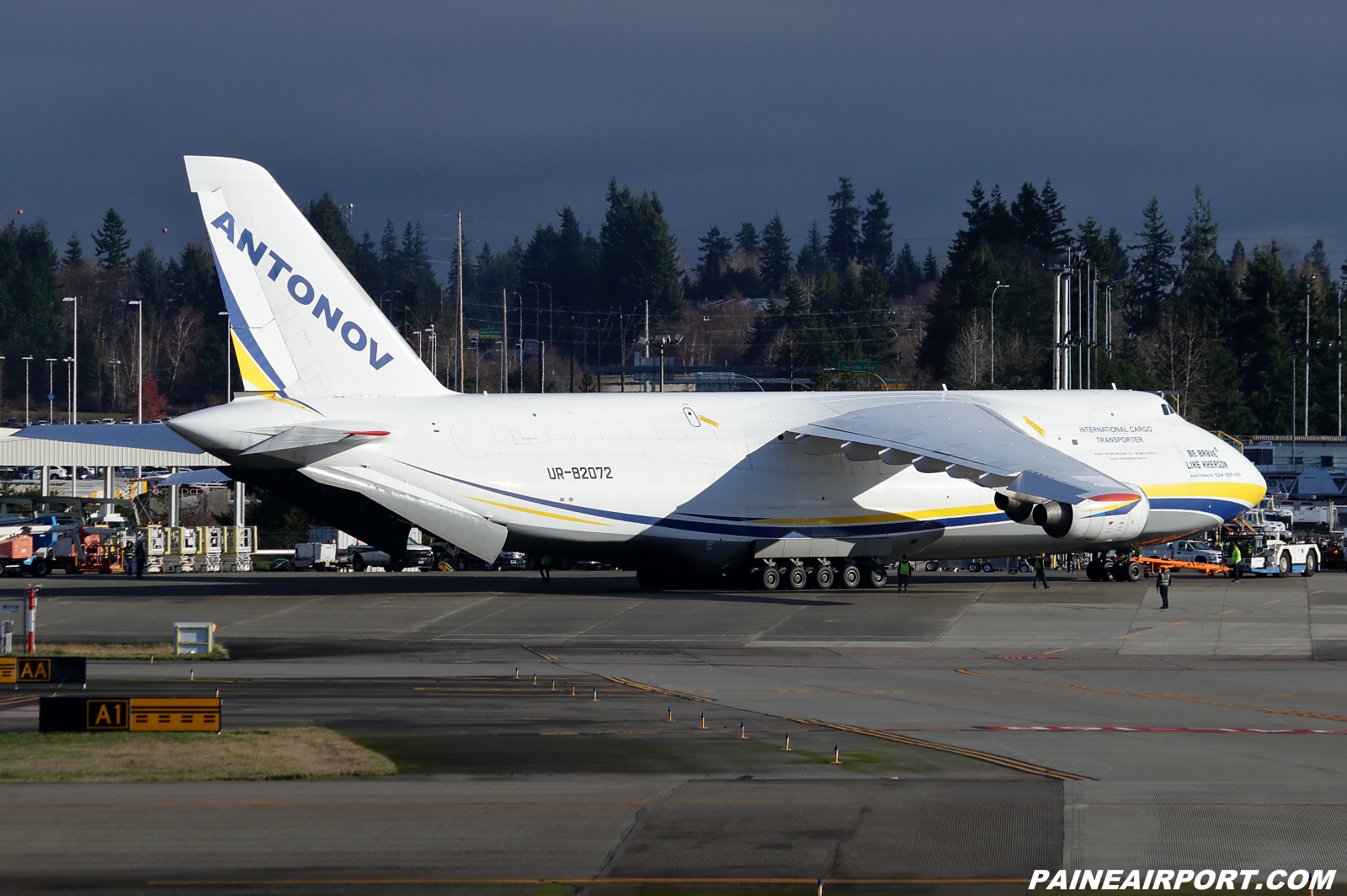 An-124 UR-82072 arrived from Wichita with two 777 thrust reversers.