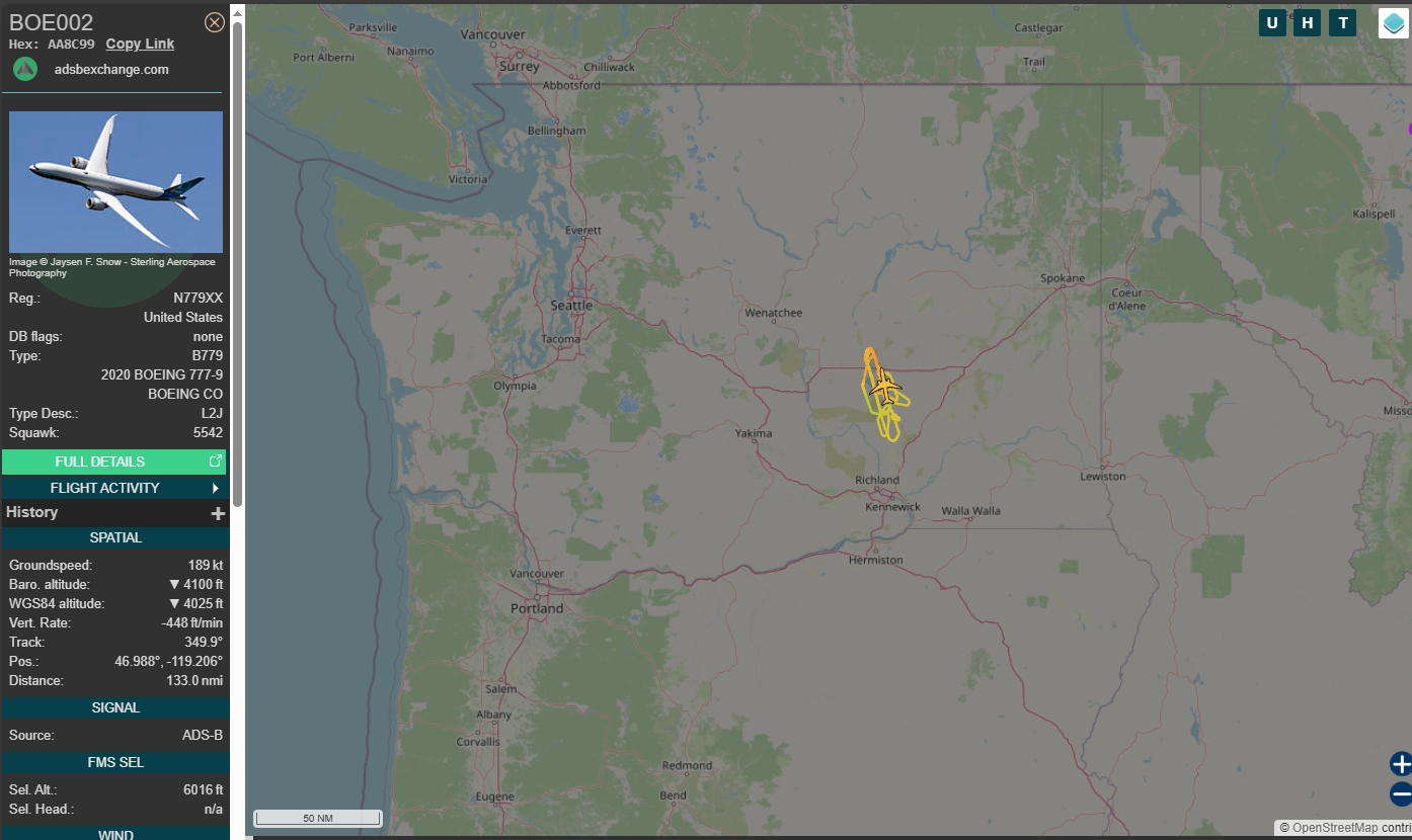 777-9 WH002 departed Boeing Field with the FAA on a certification flight of the ground maneuvering camera system