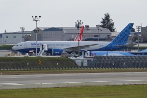 WF404 Silk Way West Airlines 777F VP-BAU was moved out of the paint hangar December 16.
