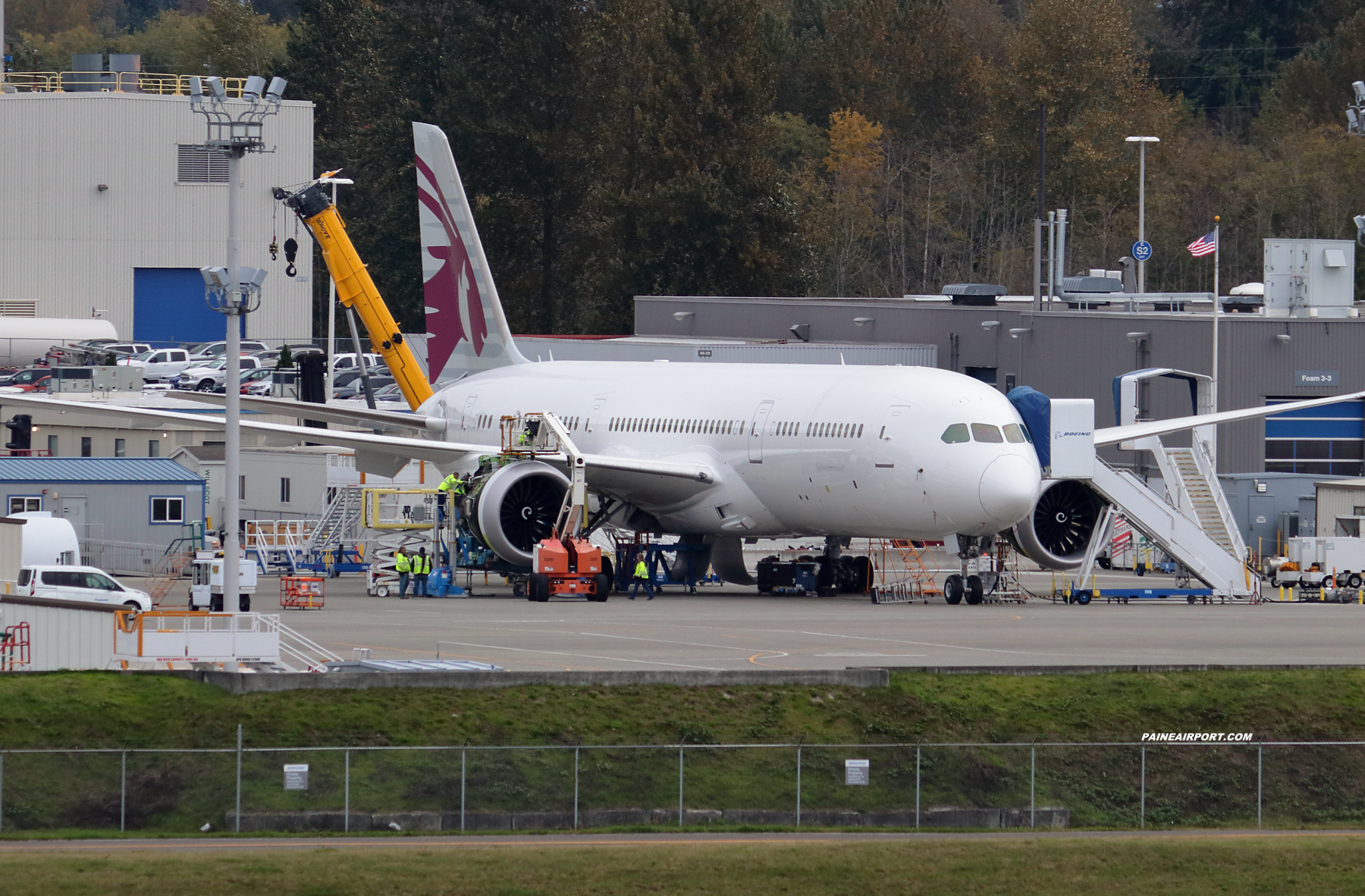 Qatar Airways 787-9 line 931 at Paine Field October 7, 2019.