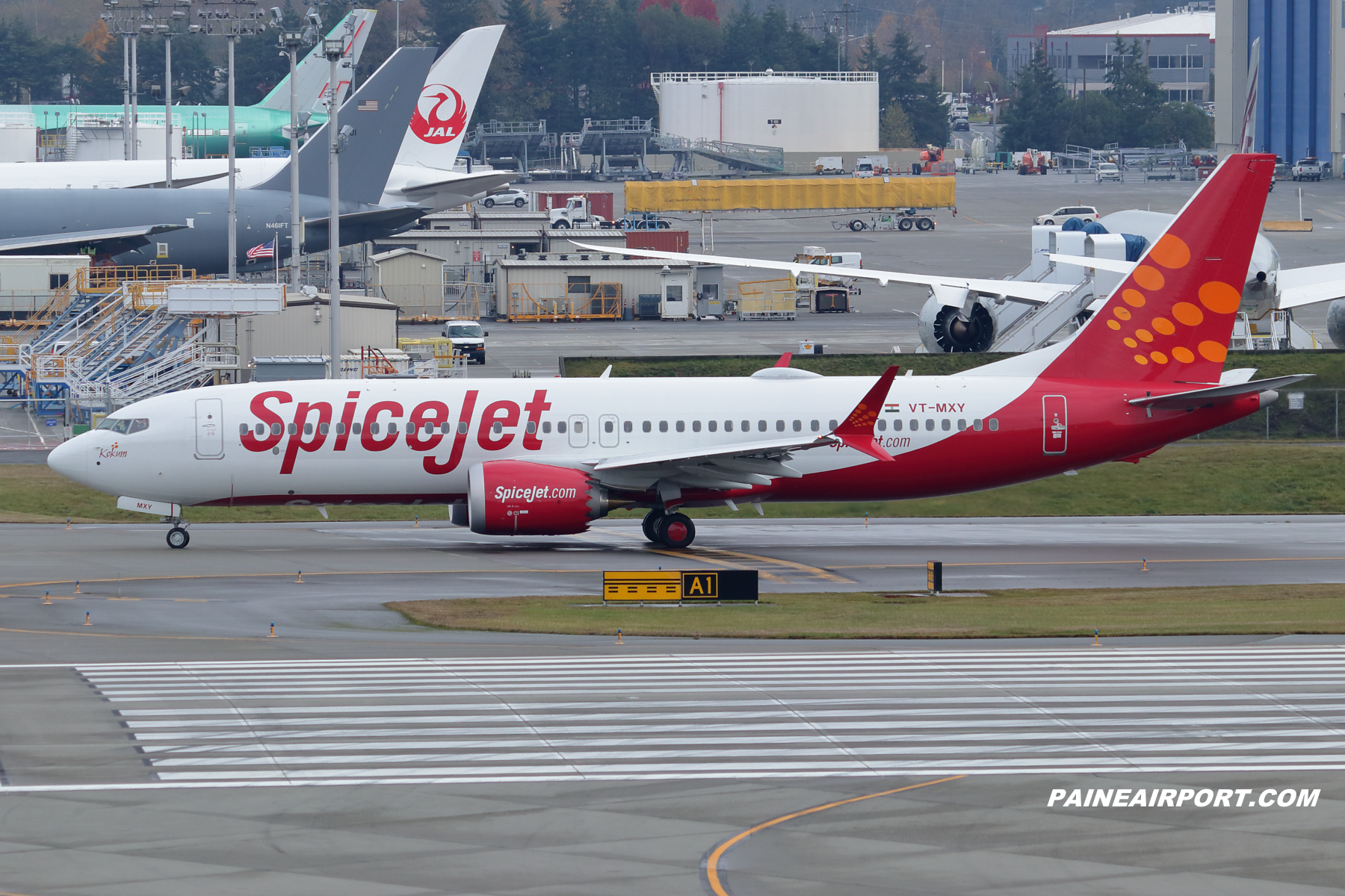SpiceJet 737 VT-MXY at Paine Field November 12, 2019.